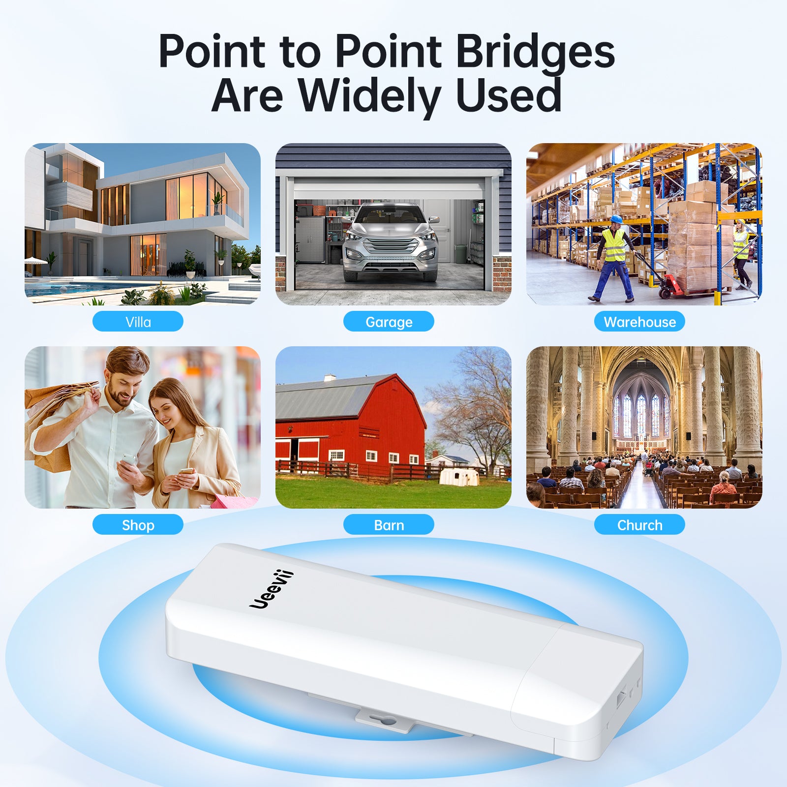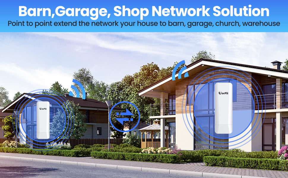 Extend the network in the house to your barn, garage, church, warehouse, even neighbor's house through wireless bridge signal transmission. No need to install a new modem and pay for it every month, saving you money.